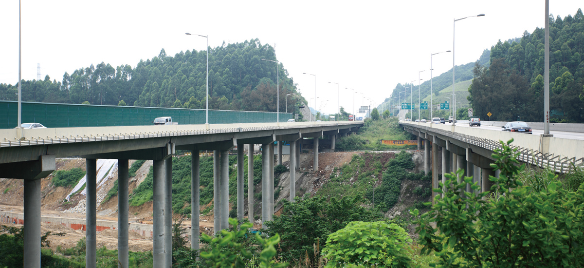廣州市華南快速路三期工程C標段為城市快速路,計算行車速度80公里/小時,全長4.29公里,雙向6車道。其中設(shè)置主線大中橋1327米/7座,穿山隧道長1020米,互通立交2處。橋隧等構(gòu)造物占整個工程的55.4%。此工程獲全國優(yōu)秀勘察設(shè)計二等獎,廣東省優(yōu)秀勘察設(shè)計一等獎。